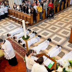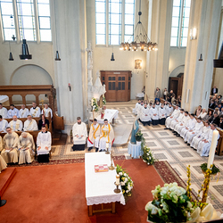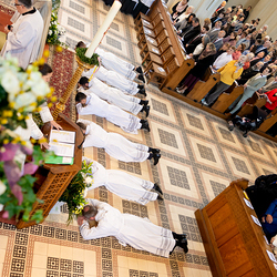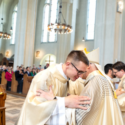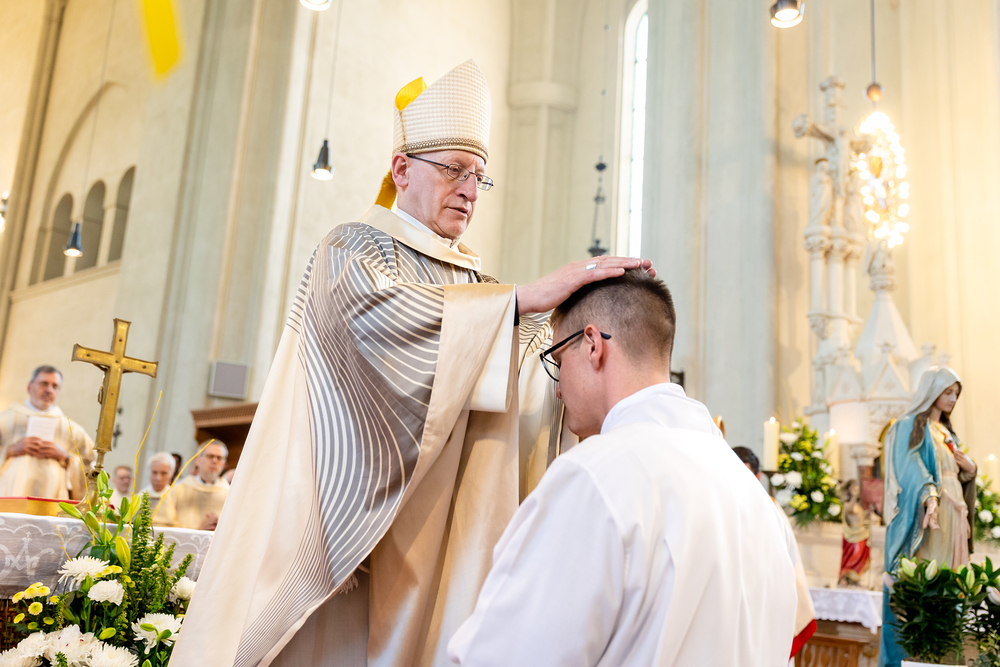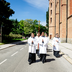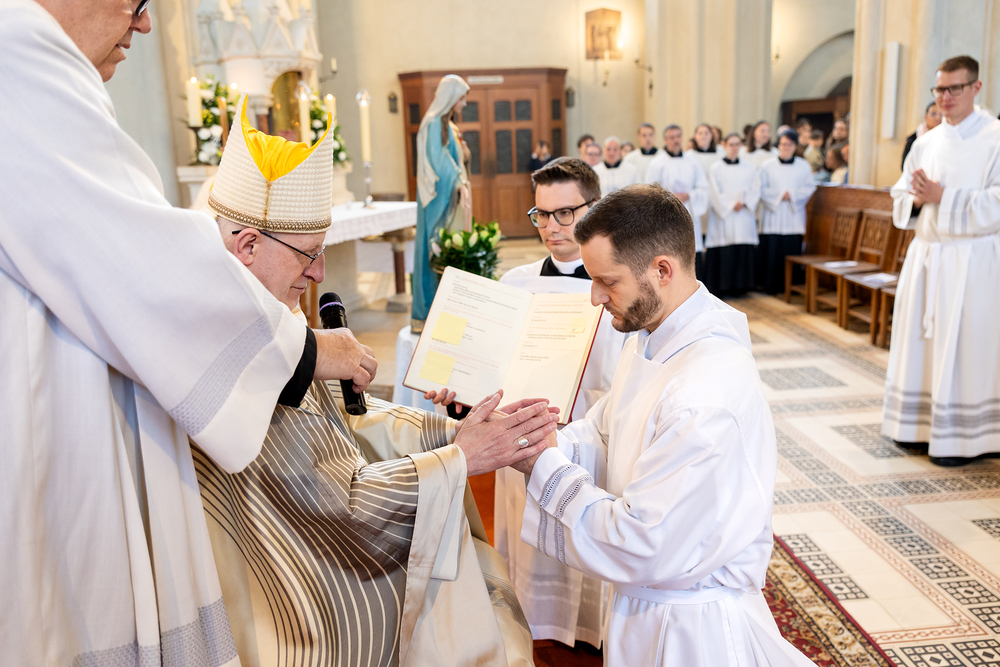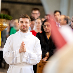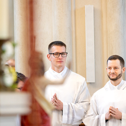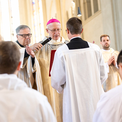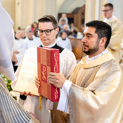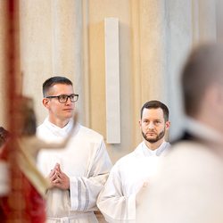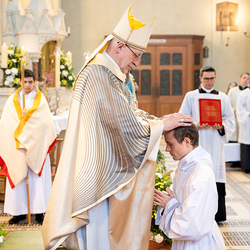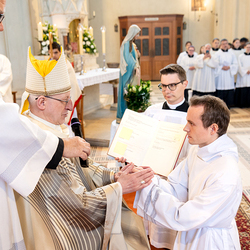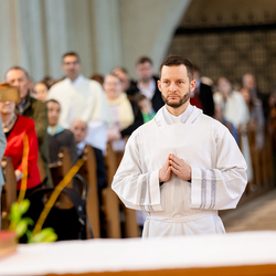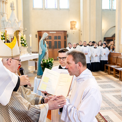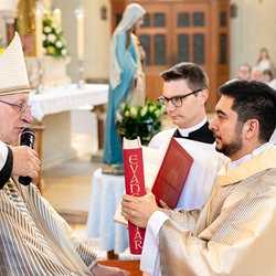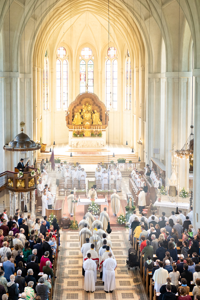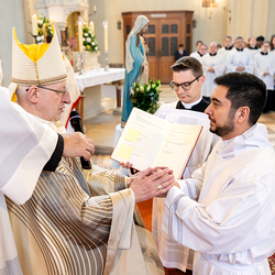 Am 10. Mai weihte Weihbischof Franz Scharl in der Pfarrkirche St. Leopold Donaufeld sieben Männer zu Diakonen für die Erzdiözese Wien. Die Kandidaten kommen aus verschiedenen Gemeinschaften: drei aus dem Wiener Priesterseminar, einer aus dem Benediktinerpriorat St. Josef in Maria Roggendorf und drei aus dem diözesanen Missionskolleg „Redemptoris Mater". Manuel Rennhofer, Joachim Loshehand und Julius Moses Münzer kommen aus dem Wiener Priesterseminar, P. Leo Maria Zehetgruber gehört dem Benediktinerpriorat St. Josef in Maria Roggendorf an drei weitere Kandidaten stammen aus dem diözesanen Missionskolleg „Redemptoris Mater“. Diese Vielfalt unterstreicht die Breite der geistlichen Berufungen in der Erzdiözese. Wir waren mit der Kamera dabei.