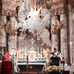 Mit dem „Red Wednesday“  wird auf das Schicksal verfolgten, unterdrückten und bedrohten Christen weltweit aufmerksam gemacht. In vielen Ländern weltweit   werden rund um diesen Tag hunderte berühmte Kathedralen, Kirchen, Klöster, Monumente und öffentliche Gebäude blutrot angestrahlt. In Wien war es unter anderem der Stephansdom und die Karlskirche, die dem Aufruf gefolgt sind. Der hl. Messe in der Karlskirche anlässlich des Red Wednesdays stand Weihbischof Scharl vor.