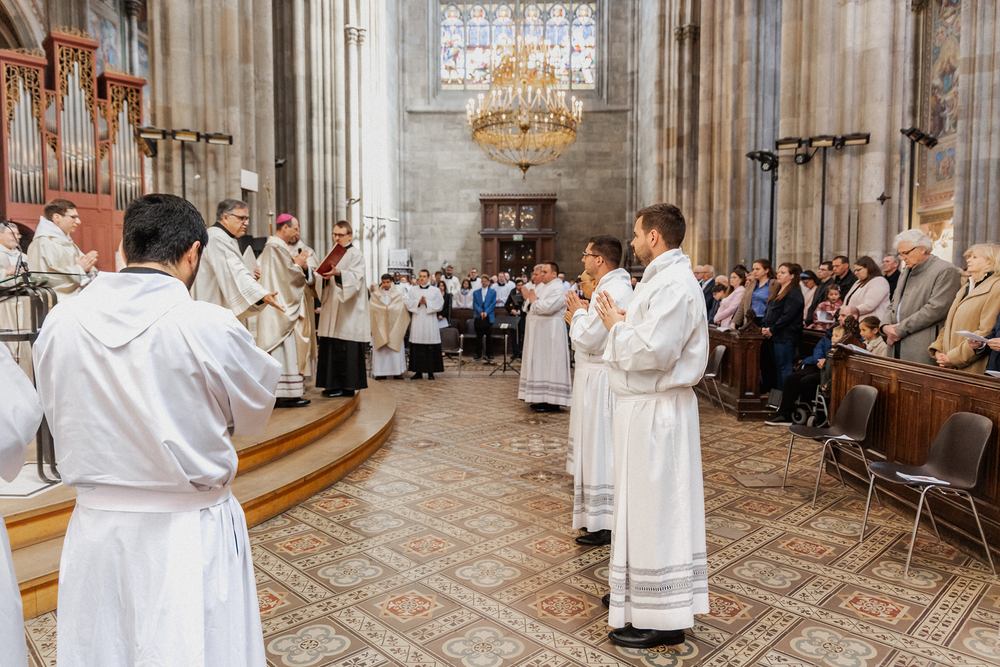 Am Samstag wurden in der Votivkirche in Wien sechs Weihekandidaten zu Diakonen geweiht. Die Weihe spendete Weihbischof Stefan Turnovszky.
